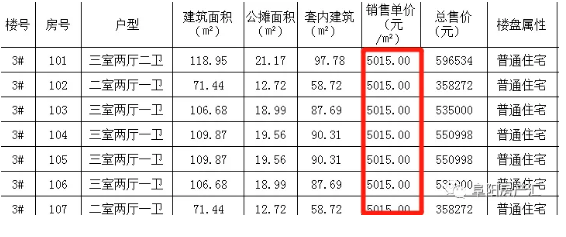 由下图可知,此次住宅备案单价最低5015元/㎡。
